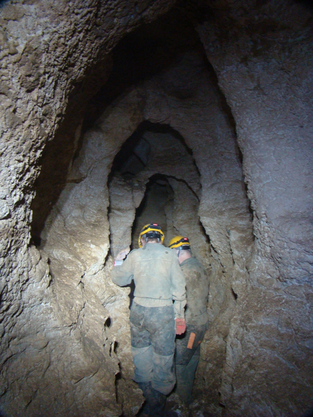 Stąd główny korytarz prowadzi na północ. Stopniowo traci zawaliskowy charakter, jest ciągle obszerny (szerokości około 2 m) i wysoki. Strop jest bogato rozbudowany, pełen zakamarków, kominków i kotłów wirowych, tworzy górne piętro. W wielu miejscach zwisają efektowne skupiska stalaktytów, niejednokrotnie przekraczających długość 0,5 m. Na ścianach bocznych korytarzy widoczne są pozostałości starej polewy, świadczące o dawniejszych, wyższych poziomach namuliska. Same ściany są dość mocno skorodowane, miejscami o gąbczastej strukturze. Po 6 m ciąg ten doprowadza do charakterystycznego rozwidlenia, nazwanego przez odkrywców Skrzyżowaniem Martwych Dusz. Tuż przed nim, pod lewą ścianą na spągu tkwią dwa efektowne, grube stalagmity o wysokości do 0,3 m oraz skupienie kilku stalaktytów odpadłych ze stropu i okazałych kości, pokrytych grzybkami i zespolonych z dnem jaskini naciekową polewą.