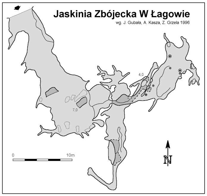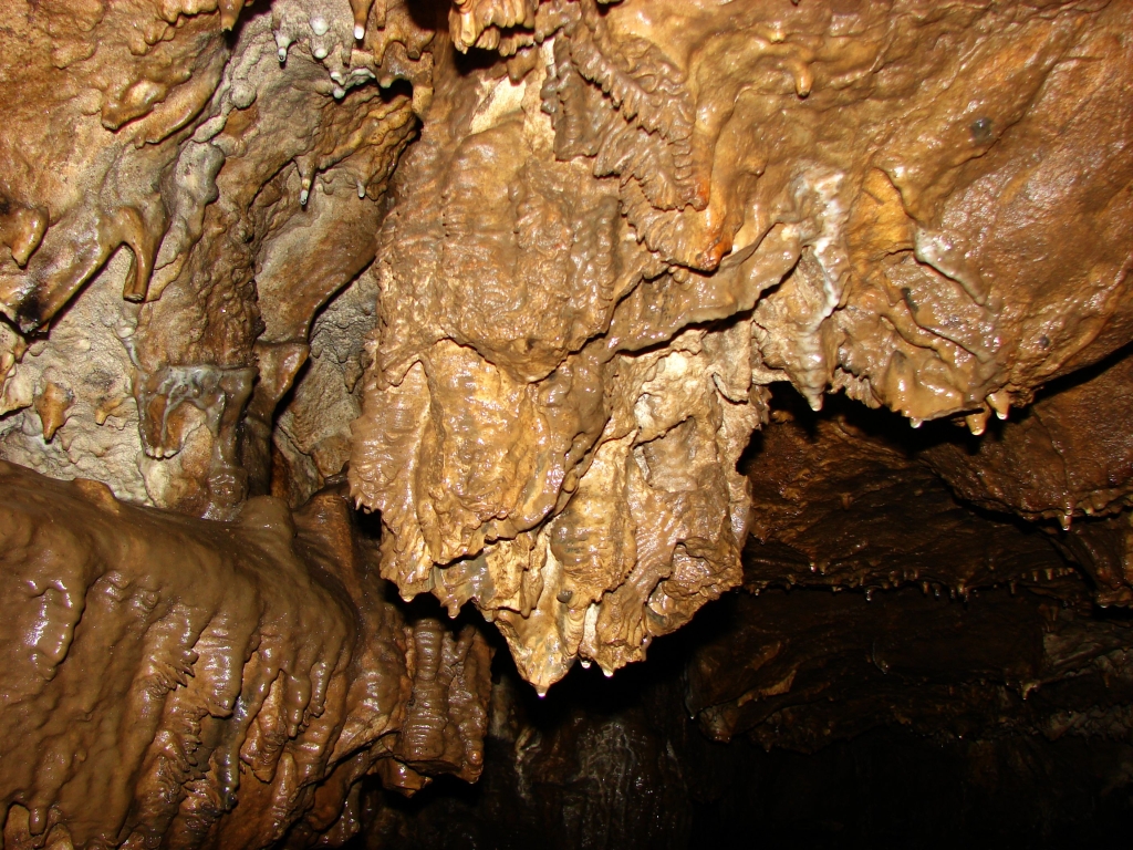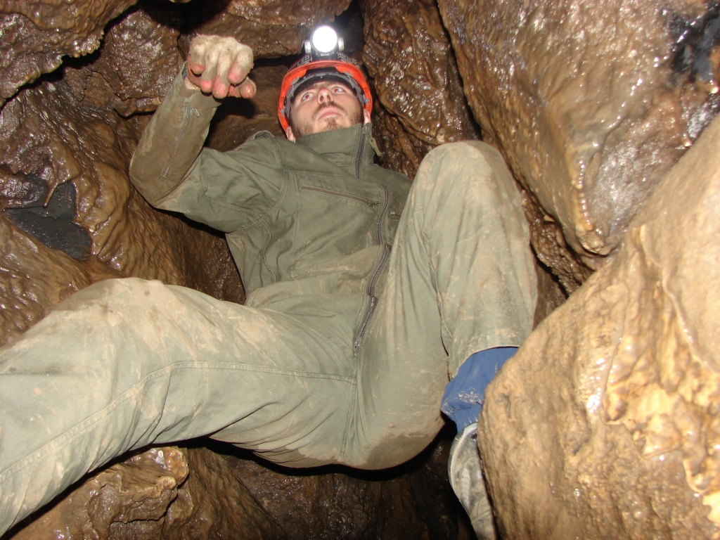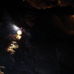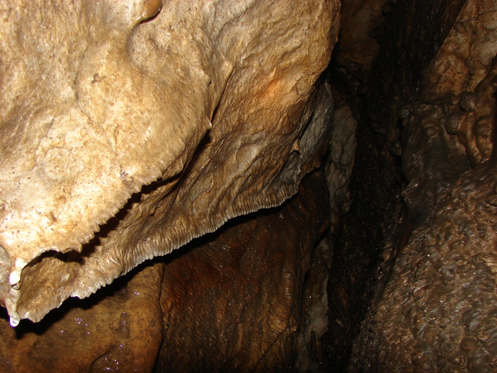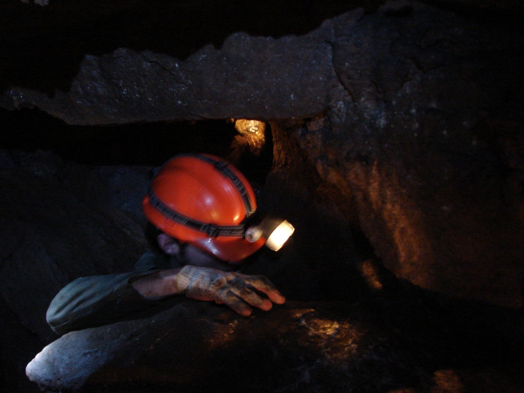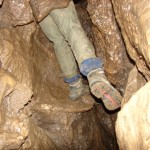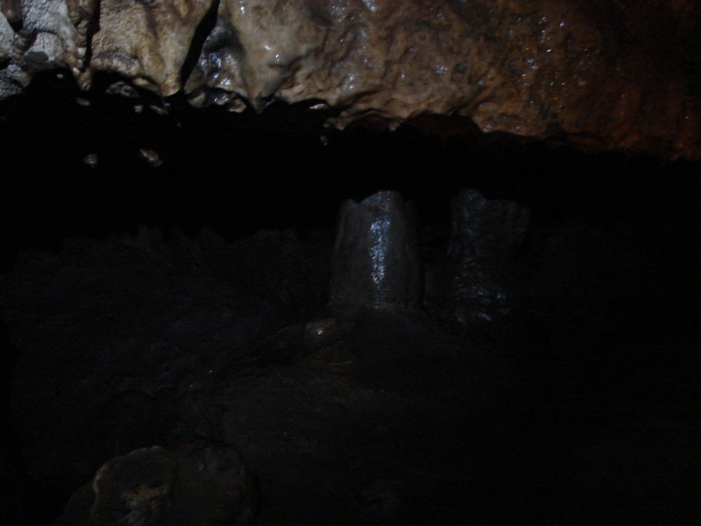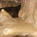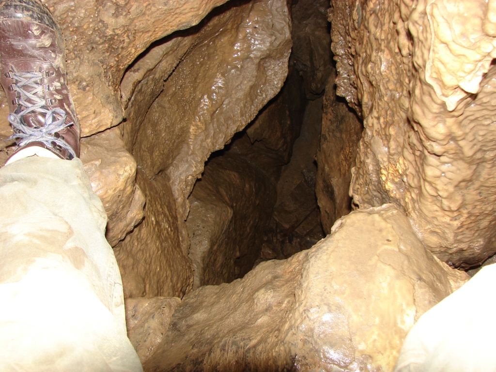 Do kolejnych sal dostajemy się wąskim korytarzem. Przeciskamy się 2÷3 m dość niskim tunelem, aby dotrzeć do komory, w której jaskinia się rozgałęzia. Możemy zejść studnią do dolnych partii jaskini lub wspiąć się ku jej górnym partiom. Podczas wchodzenia do górnej części, należy zachować szczególną ostrożność. W jaskini panuje duża wilgotność, a zatem powierzchnie są dość śliskie, dodatkowo miejsca na wykonywanie manewrów nie jest za wiele. Wchodząc na górę przeciskamy się przez kolejne zwężenie i trafiamy do głównej komory o bogatej, nie zdewastowanej polewie kalcytowej, z której w niektórych miejscach utworzyły się stalagnaty bądź średniej wielkości stalagmity i stalaktyty. Niektóre nacieki o powierzchni mocno pofałdowanej, przypominają zatrzymaną w czasie kaskadę płynącego gęstego płynu. Z tej komory odchodzi parę drobnych szczelin. Po prawej stronie od wejścia na górny poziom znajduje się druga komora z poziomą szczeliną (około 20 cm), pomiędzy stropem, a płytą skalną wytworzyły się dość grube kolumny naciekowe. Wracamy schodzimy w dół, do rozwidlenia, a następnie dalej w dół studni. Opuszczamy się do niej rozpierając się rękoma i nogami. Na dole po lewej stronie znajduję się ślepa odnoga, po prawej stronie tunel schodzi w dół tworząc dość wąską szczelinę. Przejście jest dość ciężkie i wymaga spokojnego, przemyślanego poruszania się. W końcowej fazie pokonywania zacisku musimy opuścić się na półkę niewidoczną z góry. Tutaj zaczyna się mała komora, z której po lewej stronie odchodzi korytarz. Idziemy nim. W spągu po lewej stronie istnieje dość pokaźna szczelina o głębokości około 1m. Można iść nią lub przemieścić się prawą stroną tunelu. Główny tunel wkrótce staje się coraz niższy i wymusza czołganie się. W tym momencie przydaje się posiadanie jednoczęściowego kombinezonu chroniącego przed mokrym, przypominającym błoto, namuliskiem. Po paru metrach tunel zakręca o ponad 90° w prawo. Wychylam się, aby sprawdzić czy jest możliwa dalsza eksploracja. Nie jestem tego pewny, rezygnuję ponieważ ten zakręt jest dość nieprzyjemny, a nie wiadomo czy po kilku metrach dalsza penetracja będzie możliwa.. Powoli wychodzimy przeciskając się szczelinami, wiemy gdzie trzeba się skulić, gdzie najlepiej stawiać stopy, więc jest trochę łatwiej, ale trzeba się lekko wspinać przez co w niektórych miejscach się blokujemy, na spokojnie poprawiamy pozycję i dalej podążamy do wyjścia.