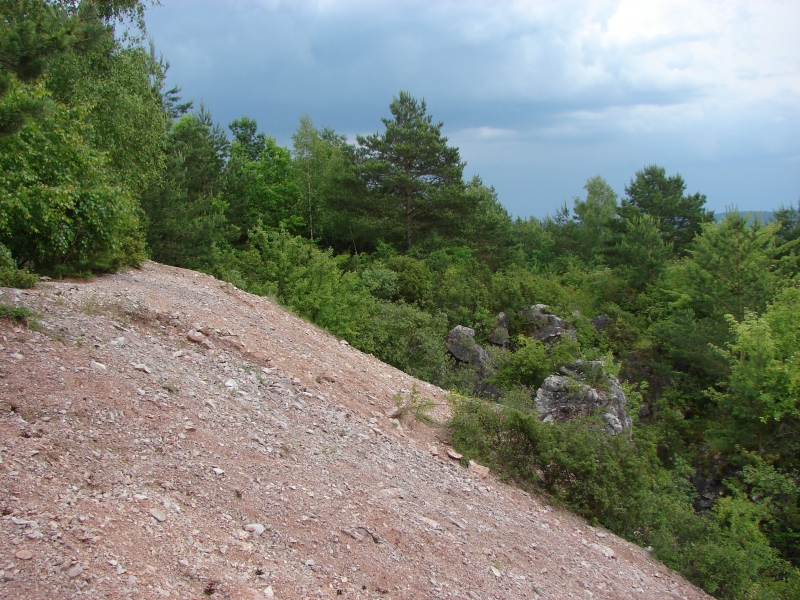 Wracamy do ciągu głównego, który ma w tym miejscu 5 m szerokości i 6 m wysokości. Podążamy nim ku SE i po 10 metrach dochodzimy do dwu bocznych korytarzy, rozwijających się po prawej stronie ciągu głównego. Pierwszy z nich to chodnik górniczy o długości 8 m. Półtora metra powyżej wejścia do wspomnianego chodnika bierze początek korytarz o charakterze stromej pochylni. Idziemy nim ku górze w kierunku S i dochodzimy do prostopadle rozwiniętego ciągu, który w kierunku zachodnim ciągnie się 10 m i kończy zawaliskiem, natomiast w kierunku wschodnim ma długość 20 m i dochodzi do korytarza ciągu głównego. Idąc dalej pochylnią docieramy po 2 m do jej rozszerzenia, z którego na zachód odchodzi wąski korytarz zagruzowany na końcu, natomiast w kierunku wschodnim podąża korytarz rozwinięty na pochyłej szczelinie, przez 10 metrów wznoszący się, później opadający progiem o wysokości 4 m, a dalej pochylnia łączący się z opisanym wcześniej korytarzem dochodzącym do ciągu głównego.
